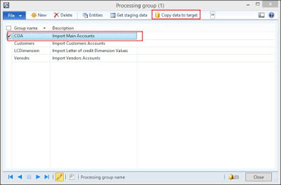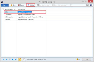 7- Go to Data import export framework --> Common --> Processing Group, Create New Group then Click the Entities Button.