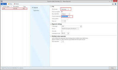 6- Go to Data import export framework --> Setup --> Source Data format, Create new source name and make sure to chose File in the Type then Change the Column delimiter if needed.